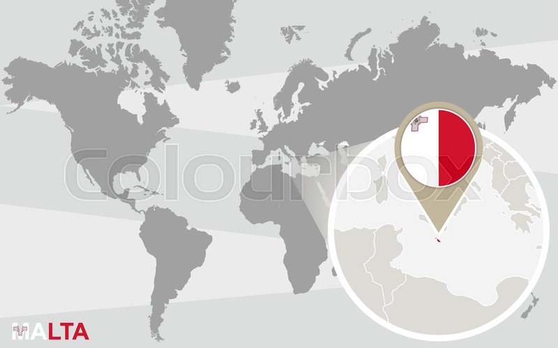 World Map With Magnified Malta Malta Stock Vector Colourbox