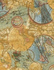 Timeless Treasures Yard Old World Globe Map Metallic Library Fabric