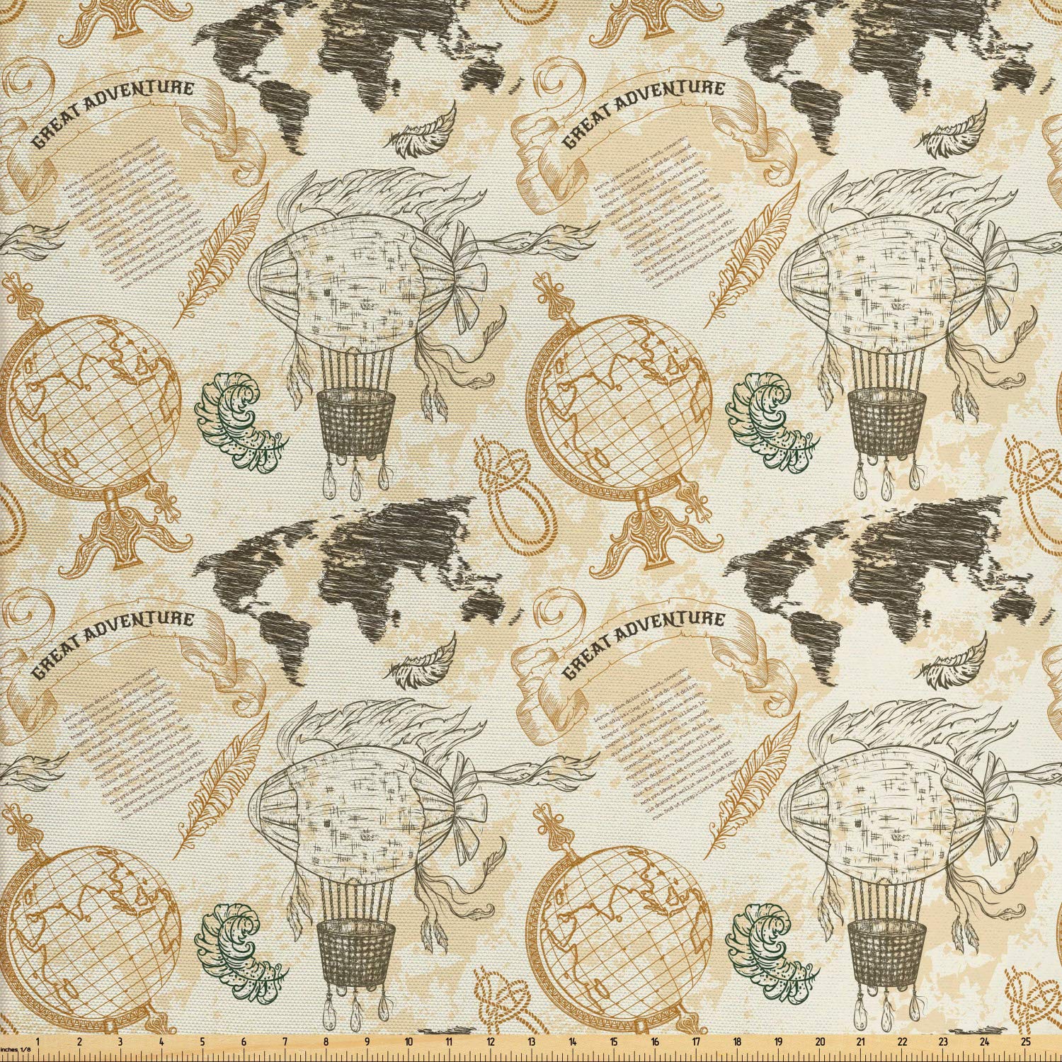 Amazon Com Ambesonne World Map Fabric By The Yard Pattern With Vintage Globe World Map Airship Rope Knots Ribbon Retro Print Decorative Fabric For Upholstery And Home Accents Beige Olive Green