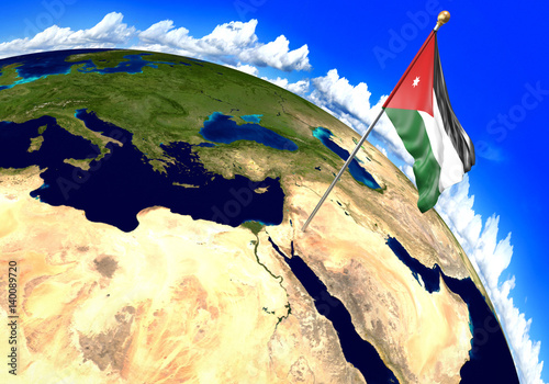 Jordan National Flag Marking The Country Location On World Map 3d Rendering Parts Of This Image Furnished By Nasa Buy This Stock Illustration And Explore Similar Illustrations At Adobe Stock