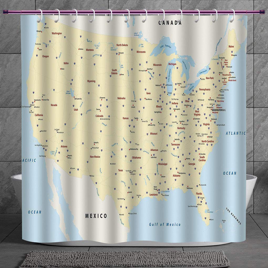 Fun Shower Curtain 2 0 Map United States Interstate Map America Cities Travel Destinations Road Route Decorative Yellow Red Light Blue Polyester Fabric Bathroom Shower Curtain Amazon In Home Kitchen