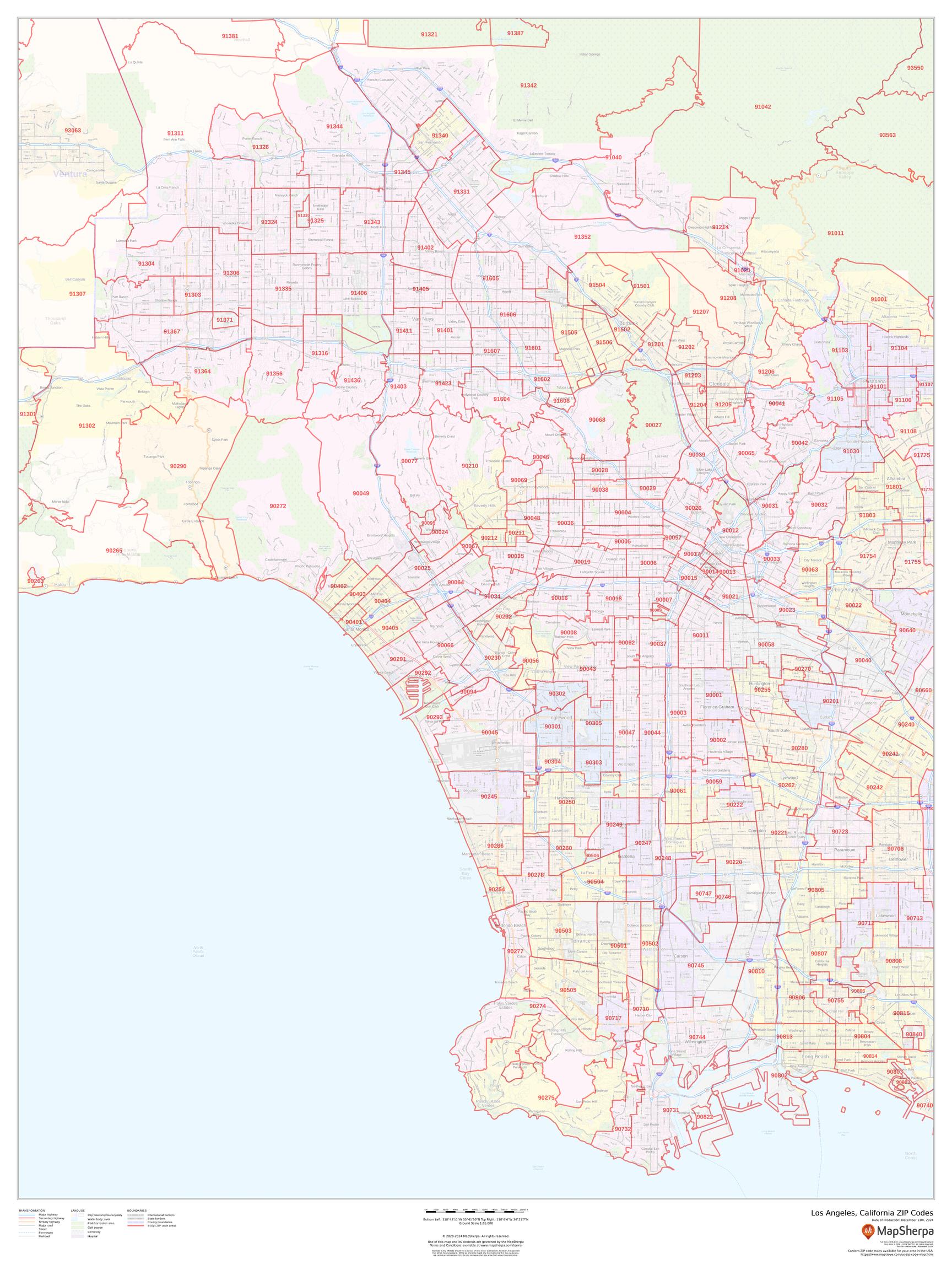 Zip Code Map For Los Angeles Holidaymapq Com