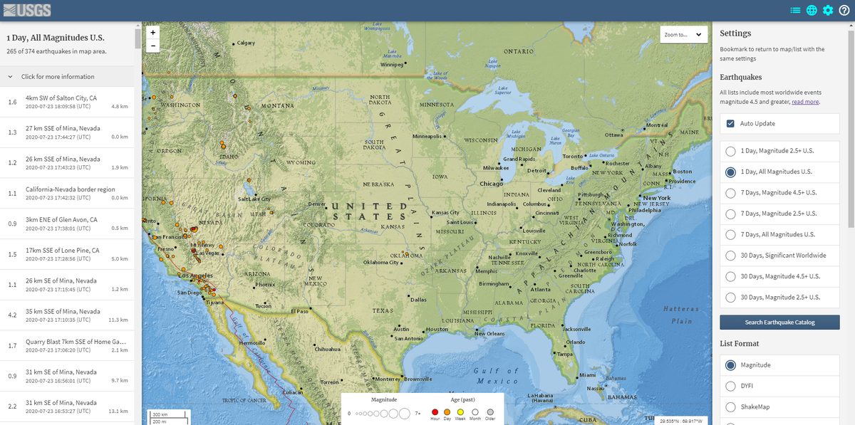 Usgs Real Time Earthquake Map. The Latest Earthquakes application supports most recent browsers view supported browsers. Earthquakes in real time. Preliminary Determination of Epicenters PDE Real-time Earthquake Products.